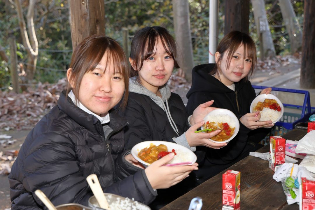 ビジネス事務コース1年生 年内の検定試験が終了したので、茨城県立青年の家でクラス行事を行いました。体育館で体を動かした後は、野外炊飯でカレー作りです。風が強くて寒かったので、カレーは◎でした。とてもおいしかったです。!!