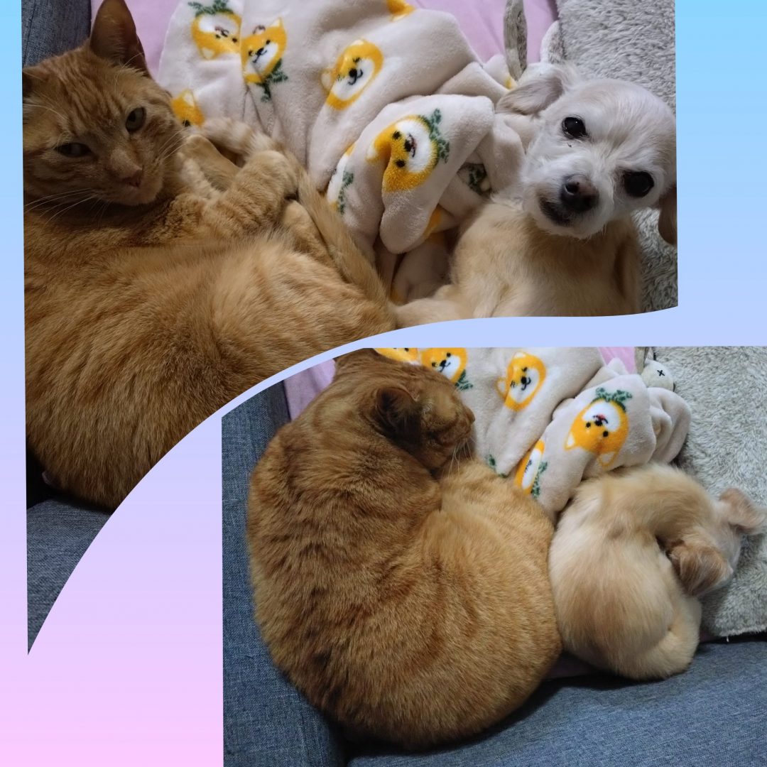 最近仲良しなひめ🐕とこたろう🐈です![]()