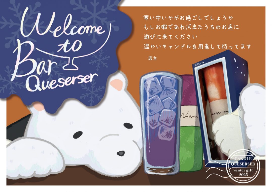 あたたかな店内でバーテンダーのくまさんがカクテルのようにキャンドルを差し出してくれています。